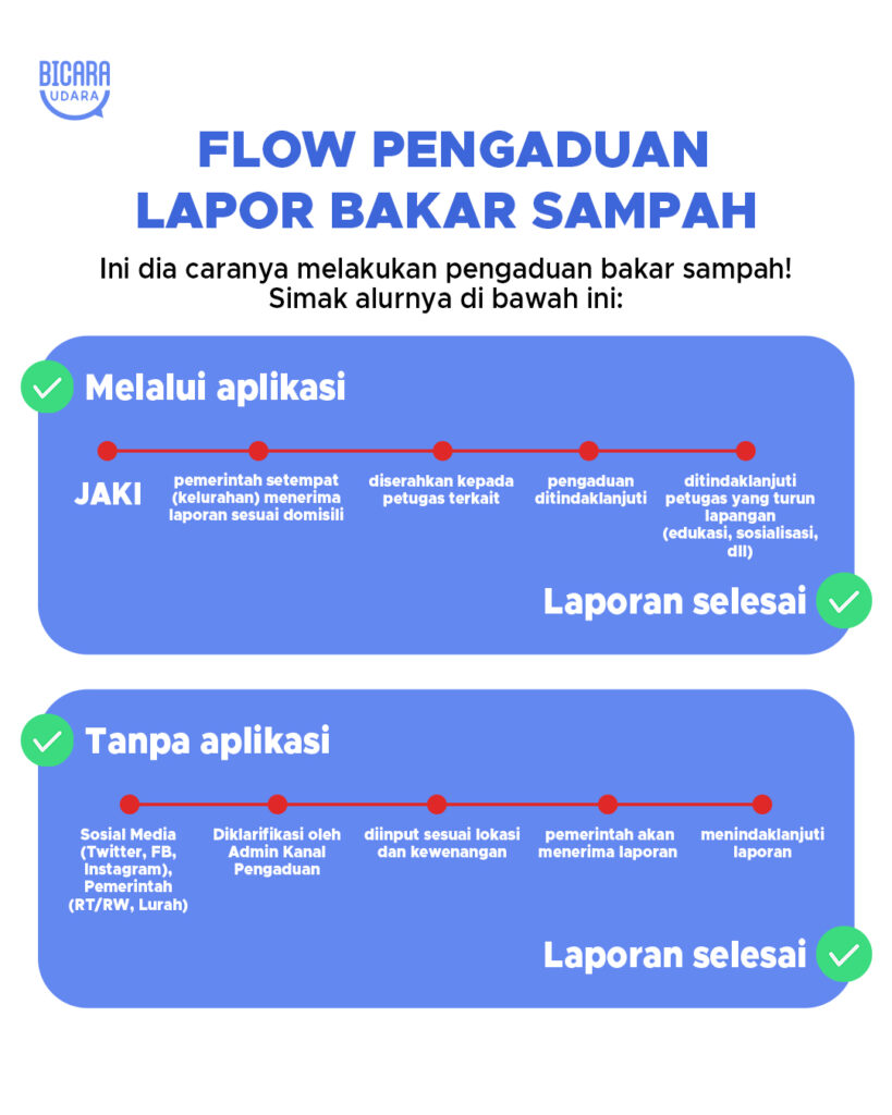 Sebenarnya ada loh unsur pemerintah yang dapat mengakomodir pelaporan bakar sampah. Instansi Dinas Lingkungan Hidup bertanggung jawab mengawasi pengelolaan sampah loh. Jika Parents tinggal di Jakarta, bisa lapor praktik bakar sampah yang tak bertanggung jawab mengikuti alur berikut ini: